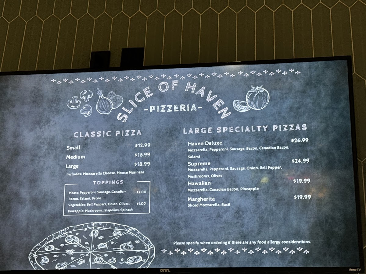 Whether you’re craving a hearty pizza or a simple snack, Slice Of Haven Pizzeria has something for everyone, making it a great stop for all your cravings.